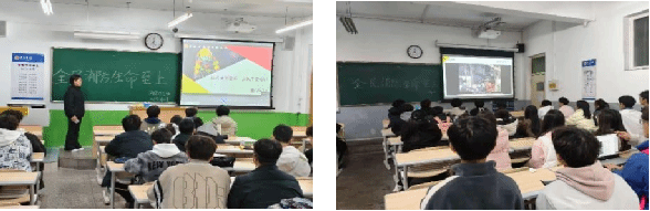 班会上,各班严格落实相关要求,组织学生集中观看长治市消防救援支队提供的《提升消防意识,共筑平安校园》宣传视频。同时,通过案例剖析、知识互动等多样化形式,帮助学生系统掌握消防常识,熟练运用应急处置技能。