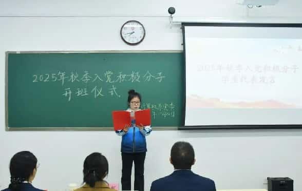 2025年秋季入党积极分子代表王哲语表示,将严于律己、坚守信仰、践行使命,把理论融入日常,在实践中锤炼党性。