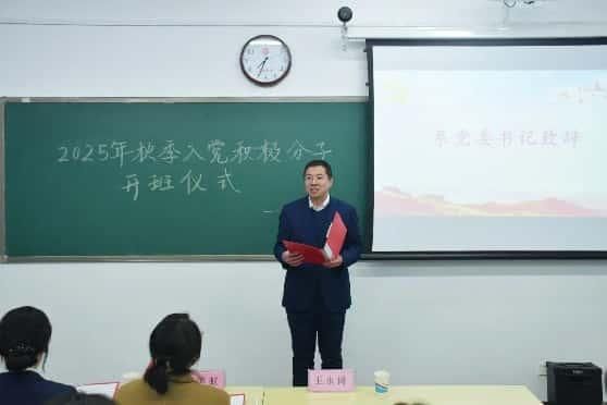 系党委书记王永岗在致辞中对入党积极分子提出三点要求。一是把握培训核心,通过理论学习与实践活动筑牢思想根基;二是深化培训意义,强化政治责任担当;三是严守培训纪律,确保学习实效,将理论融入日常实践,在躬身实干中锤炼过硬的党性修养。