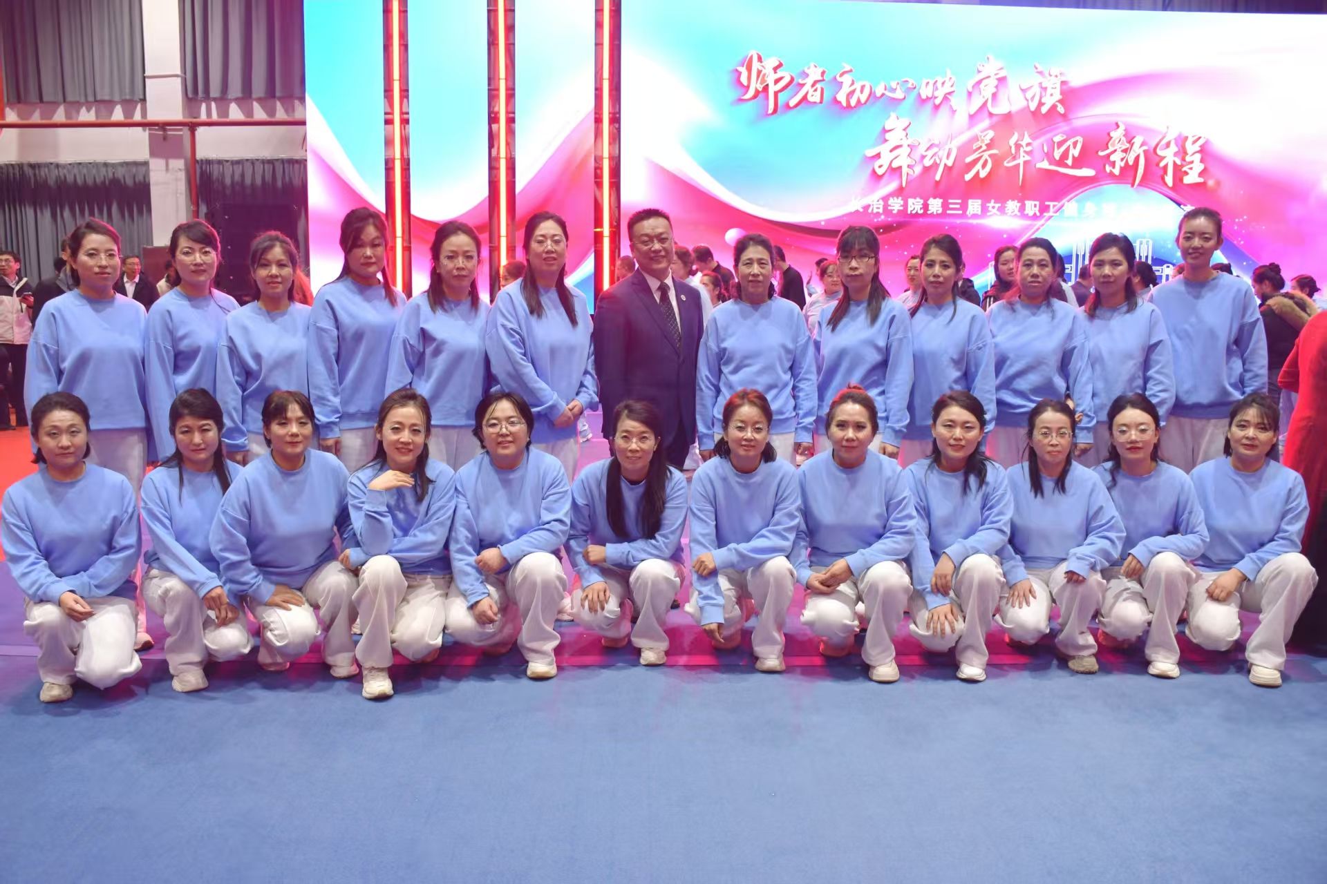 12月23日,长治学院第三届女教职工健身操展演在南校区羽毛球馆圆满落幕。我系全体女教职工参与。