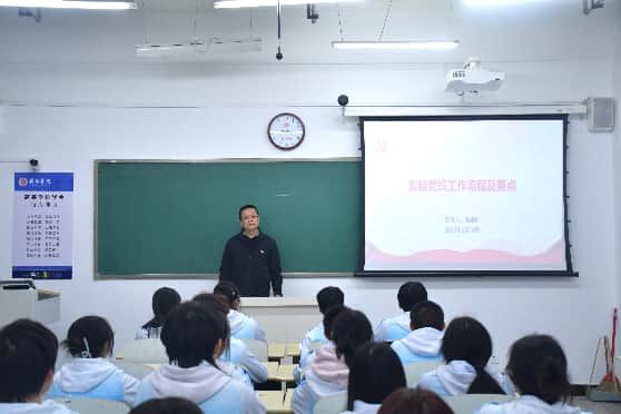 党课以“发展党员工作流程及要点”为主题,毛建新老师围绕申请入党、入党积极分子的确定和培养教育、发展对象的确定和考察、预备党员的接收、预备党员的教育考察和转正五个关键环节,详细解读相关标准、程序与纪律要求,强调要严把政治标准和党员入口关,确保学生党员发展工作规范有序。