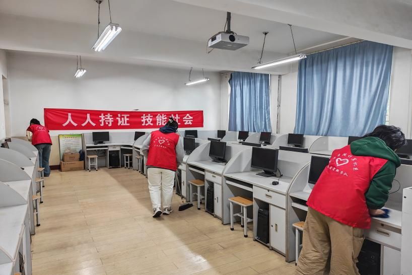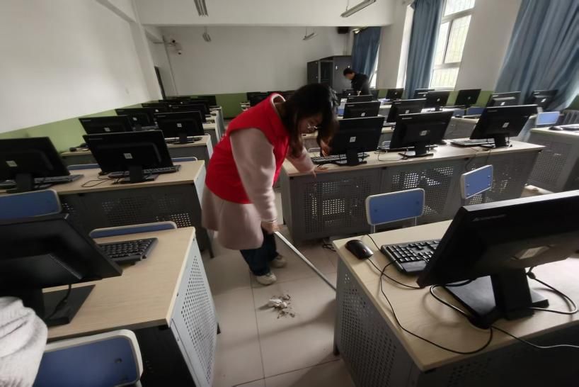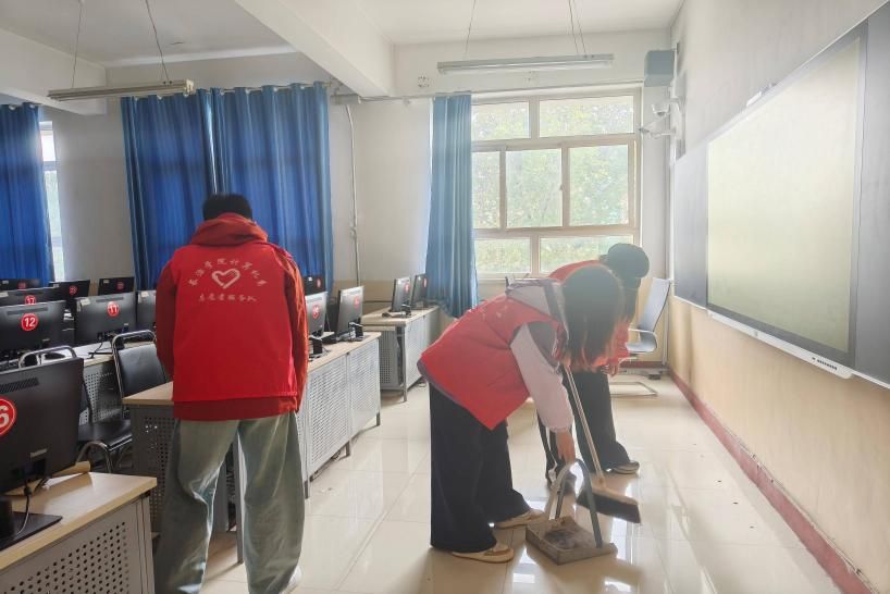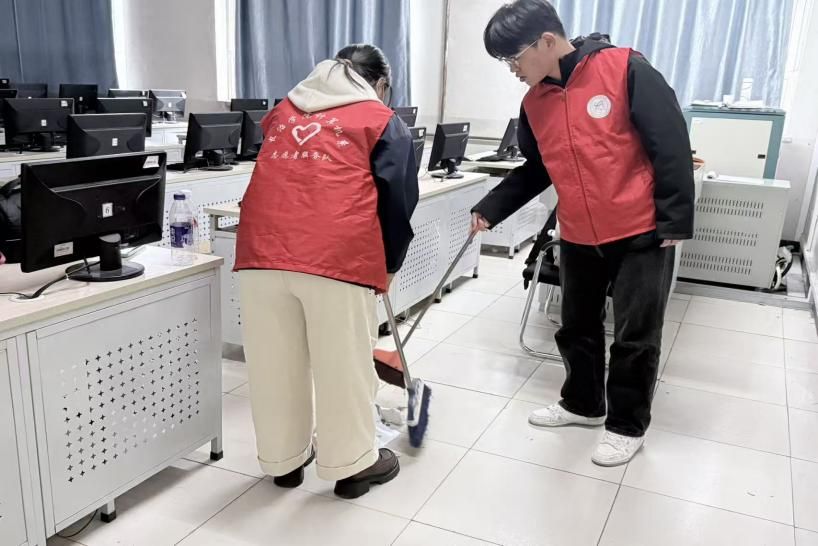 活动现场,志愿者们明确分工后迅速投入劳动。大家各司其职,配合默契,认真清扫机房地面、擦拭电脑桌椅、清理键盘鼠标,切实将“志愿服务精神”落到实处,为我系学子营造整洁有序的实验环境。