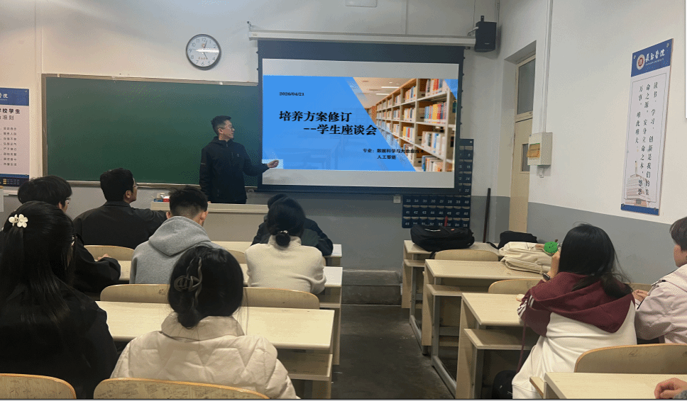 为深入推进人才培养方案修订工作,精准对接学生成长需求与专业发展实际,切实提升应用型人才培养质量,计算机系于2026年4月21日下午组织召开人才培养方案修订学生座谈会。计算机科学与技术、网络工程、数据科学与大数据技术、人工智能四个专业负责人、教师代表及各专业学生代表参会,会议围绕现行的2022版和2024版培养方案执行情况、课程设置、实践教学、学业发展等内容展开充分交流研讨。