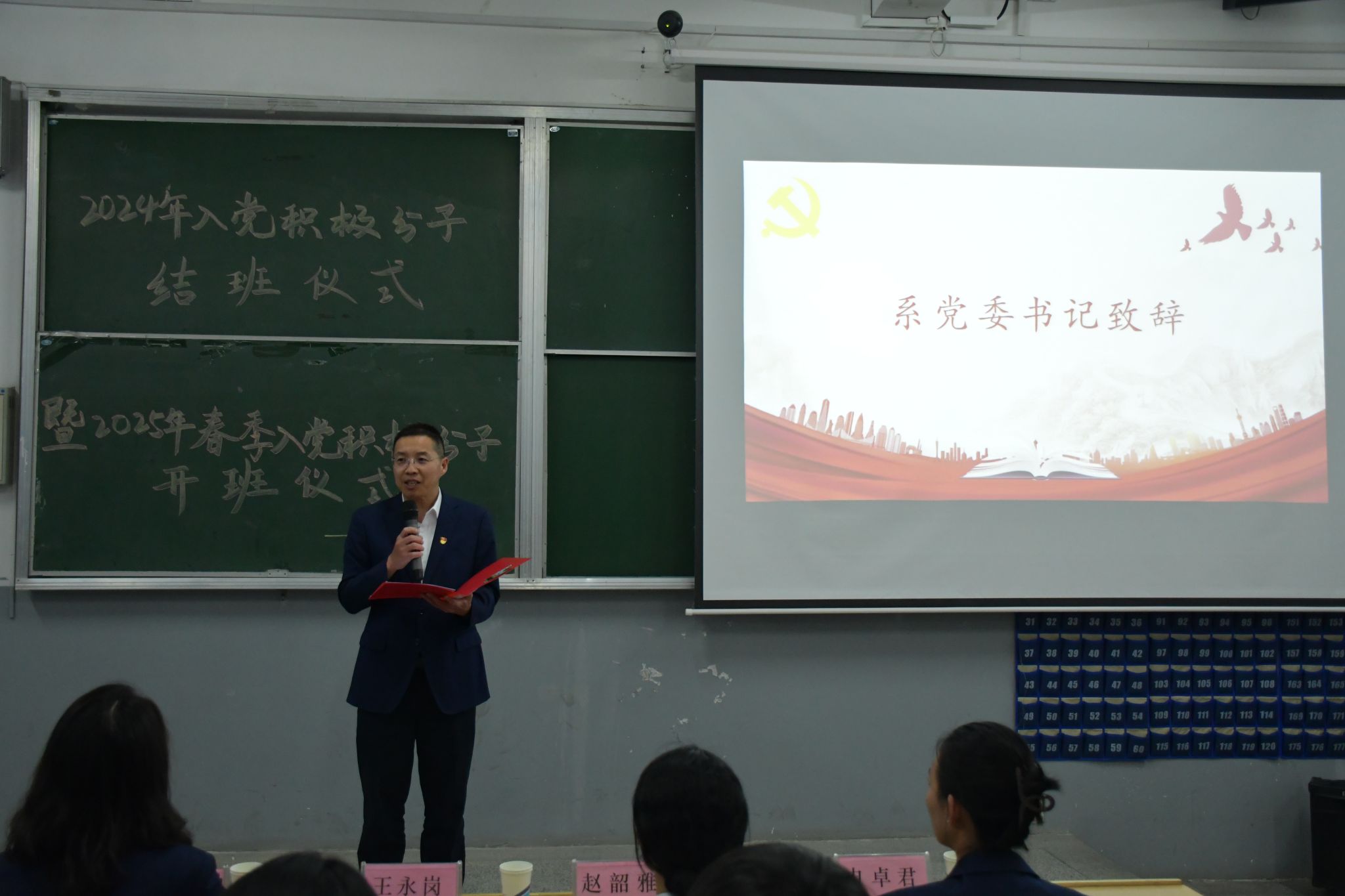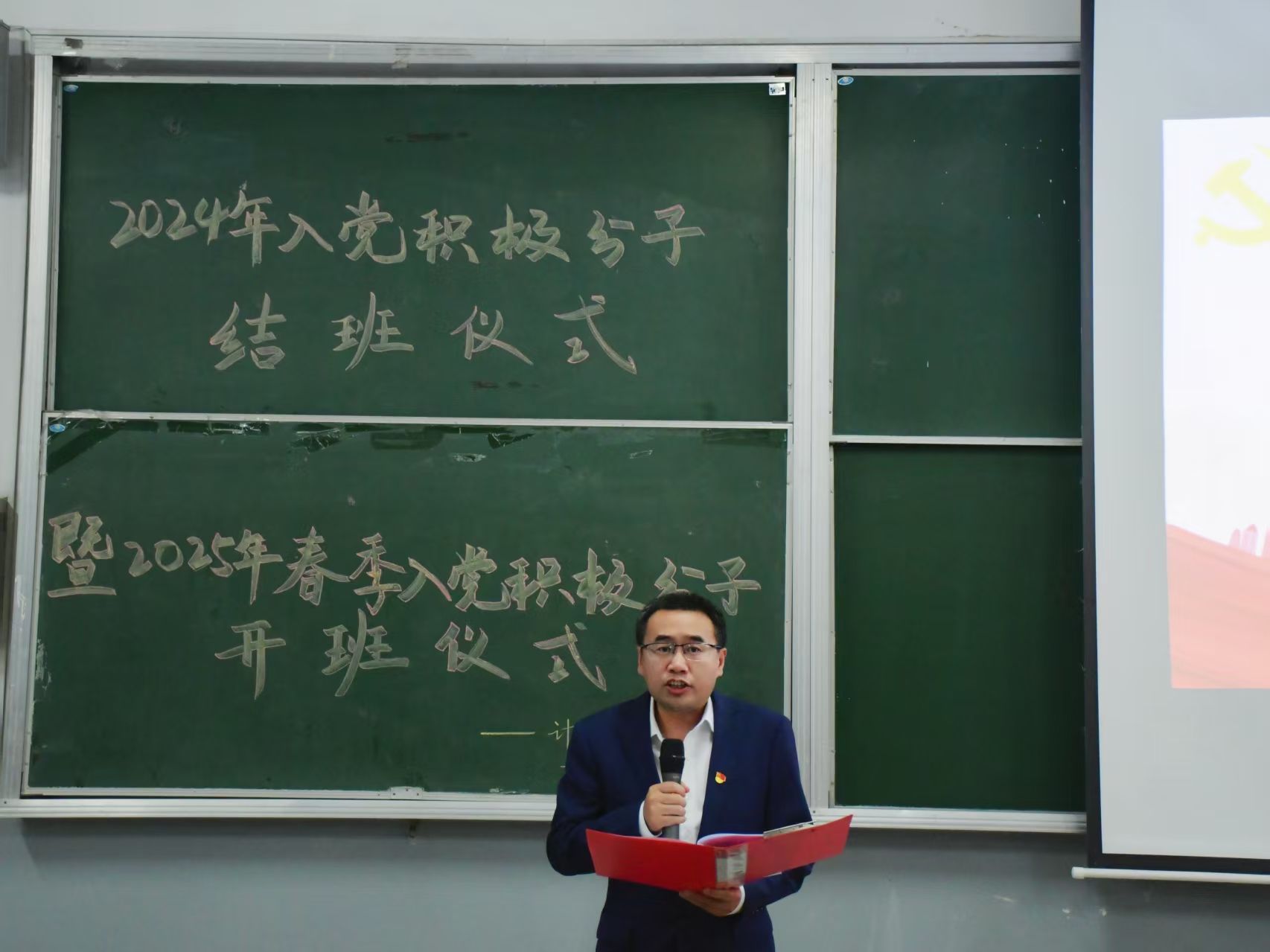 仪式上,王永岗为全体入党积极分子致辞。他首先向2024年度56名圆满完成培训任务的学员表示祝贺,充分肯定其取得的理论学习成果、实践服务成效及专业学习进步。同时,对2025年春季入党积极分子提出三点要求。一是要深入了解培训课程,通过系统性集中学习准确把握党的理论精髓,夯实政治理论素养与实践能力基础;二是要充分认识培训的重要意义,不断强化政治责任担当,理解入党积极分子培训是作为贯彻党内规章制度、端正入党动机、确保党员发展质量的重要途径;三是要严格遵守培训纪律,注重端正学习态度,确保学有所获。